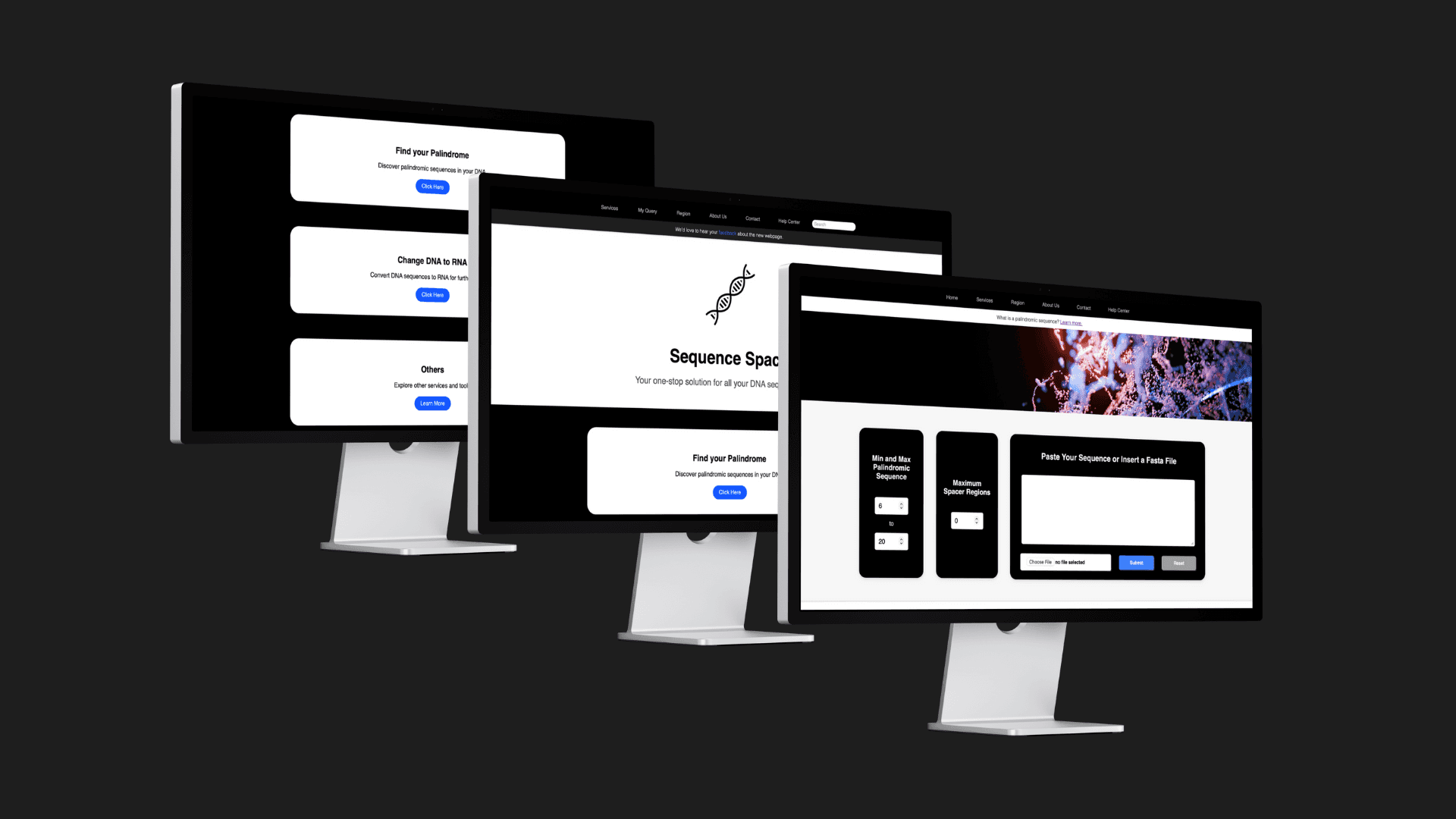 Sequence Space is a gene analysis platform developed using HTML, CSS, and JavaScript, designed to challenge the common perception that bioinformatics platforms are merely functional and often lack creativity and aesthetics. The website features a clean, minimalist design that balances functionality with visual appeal.